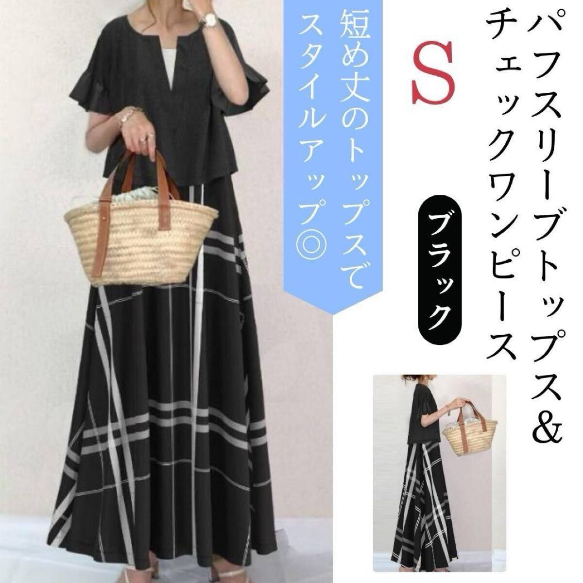 - セットアップ ワンピース ブラック S チェックワンピース セット クロップド丈