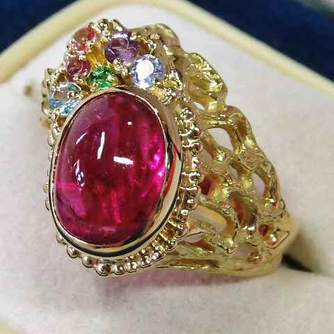 > 【値下げ交渉は質問欄より】桐山勇三デザイナーズデザイン★4CTのルビーが素敵☆K18製リング☆ピカピカ逸品指輪#10号☆