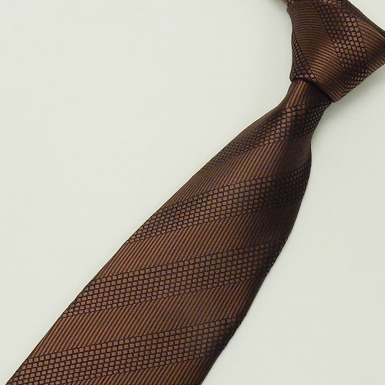 - 日本製 ネクタイ 甲州織 チョコ茶×黒/織柄ストライプ テトロン糸使用 洗濯機OK メール便OK BUN-OST09