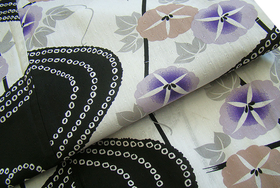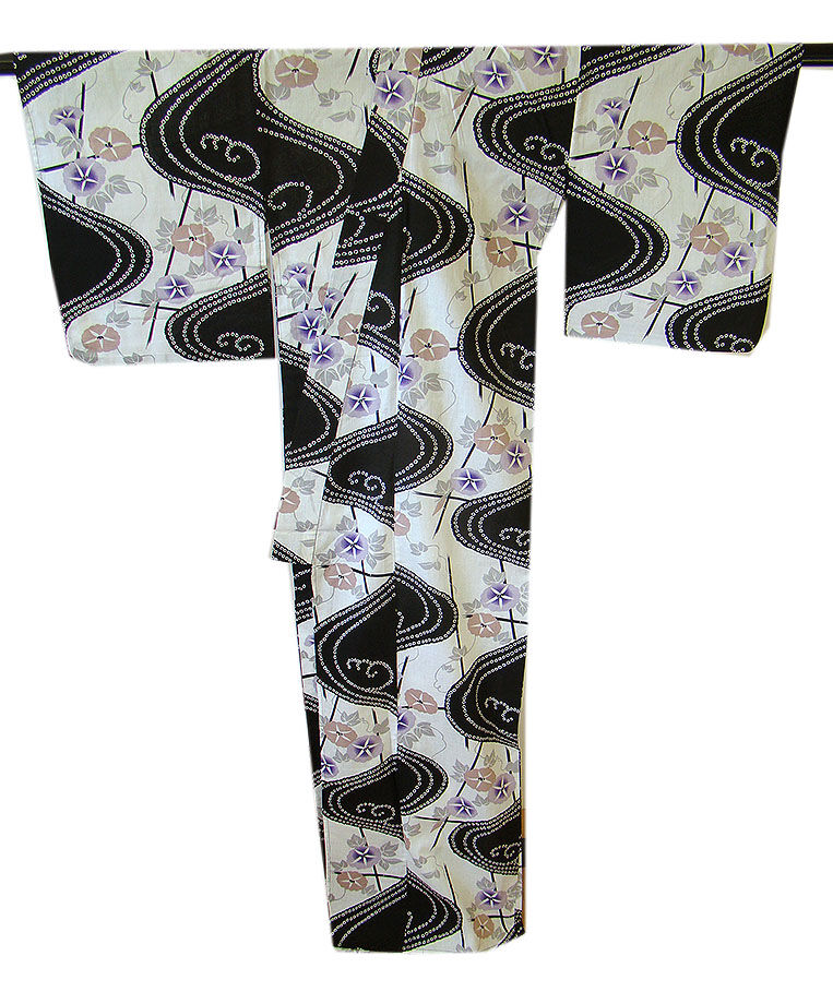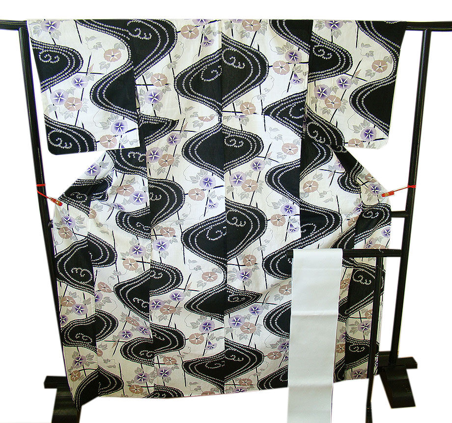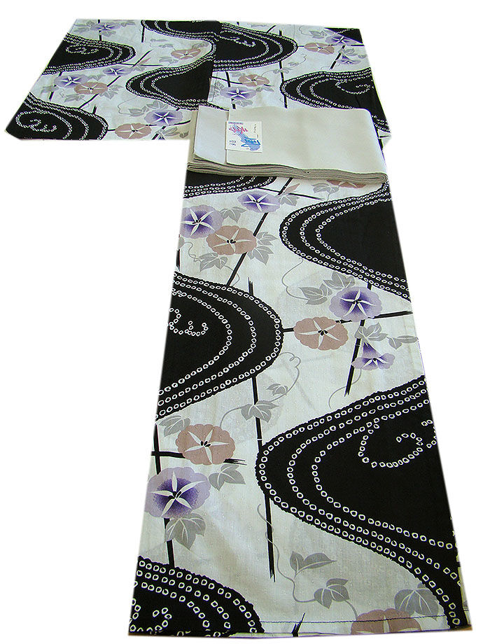 - 夏物美品!浴衣 裄65.6cm 四寸帯 2点 セット ポリエステル 綿 未使用 152cm~158cm Ym124