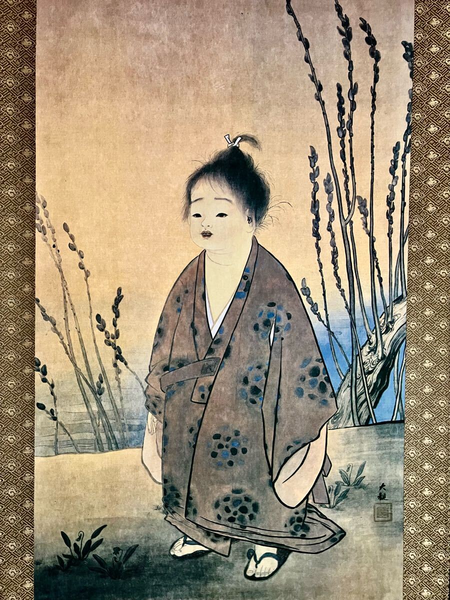 - 【複製】【S8】横山大観「無我」絹本 紙箱 工芸 大幅 人物画 童子図 端午の節句 絵画 掛軸 明治-昭和時代の日本画家 茨城の人 真作の工芸品