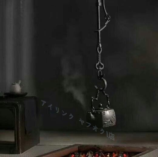 - 金属工芸鉄の自在鉤 じざいかぎ 純鉄製 煎茶道具 囲炉裏 伝統工芸 総長156CM