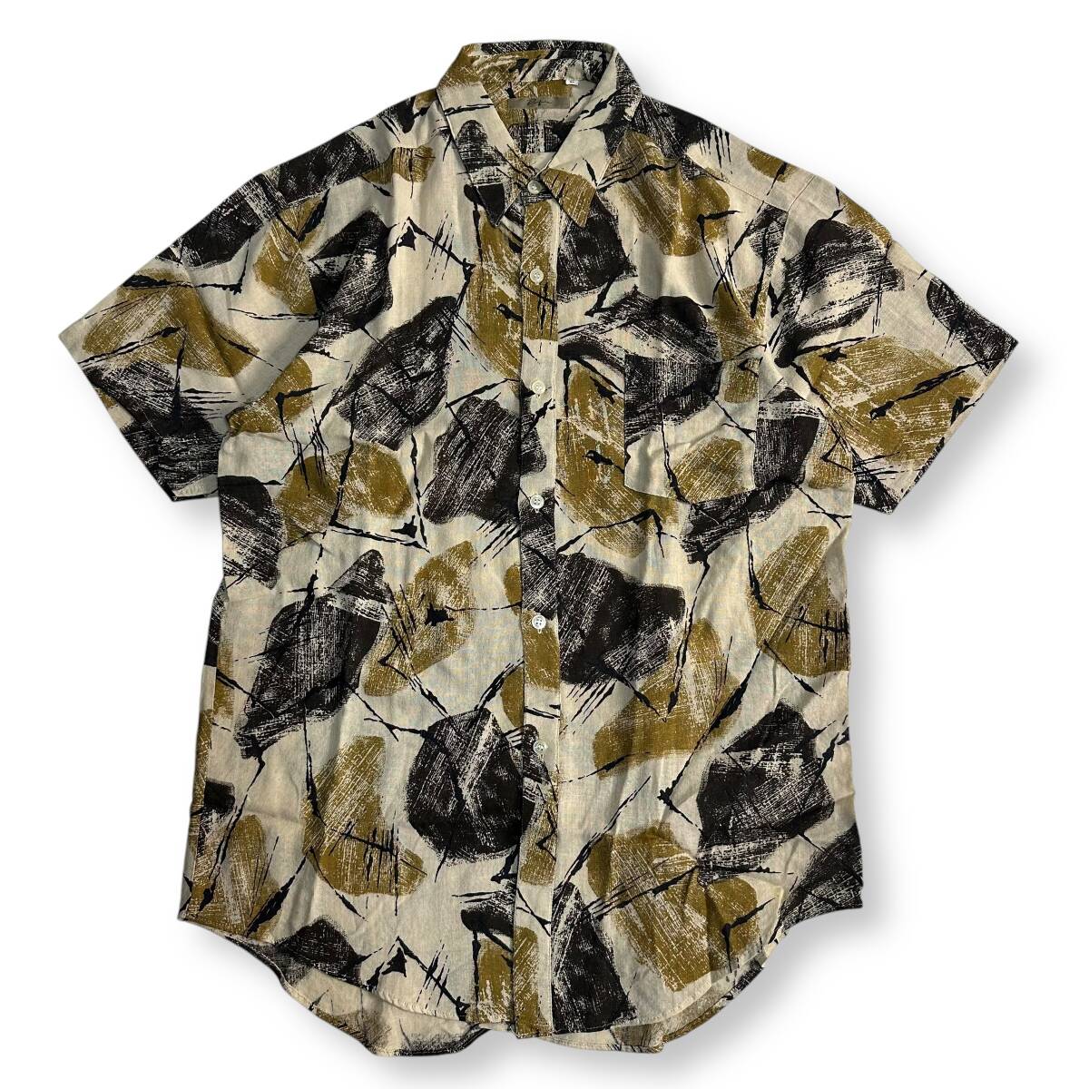 - 秀逸【Ronfric】VINTAGE 80s 90s 総柄 レーヨン&リネン ビンテージ 半袖シャツ レトロ 古着