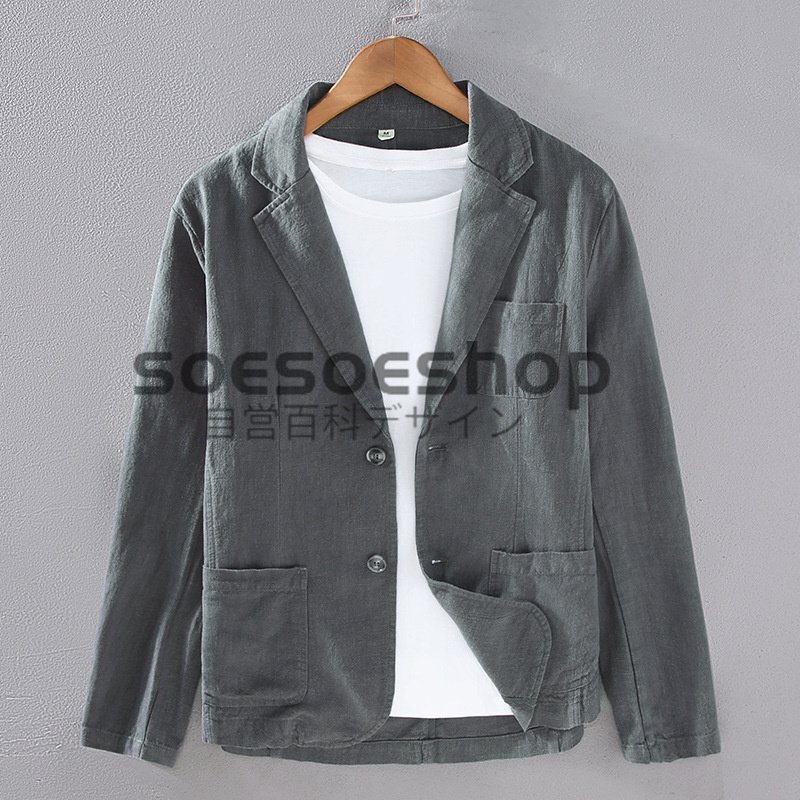 - 夏新品◆テーラードジャケット メンズ 綿麻 麻スーツ 背広 ビジネス リネンジャケット 薄手 通気性 清涼感 日焼け止め 紳士服 グレー