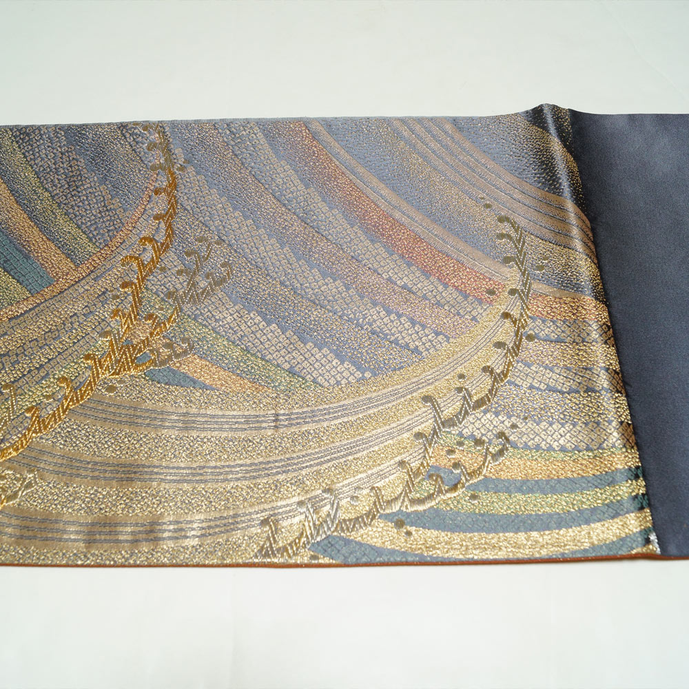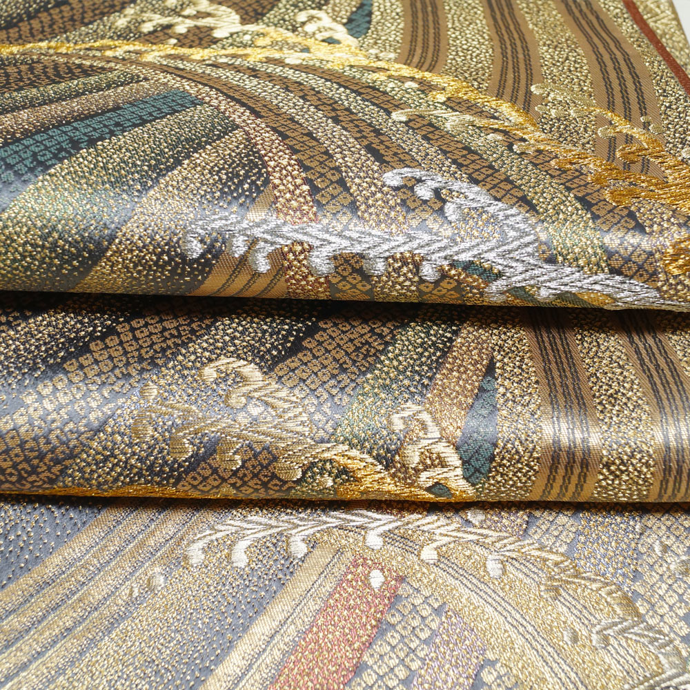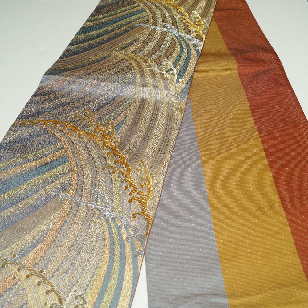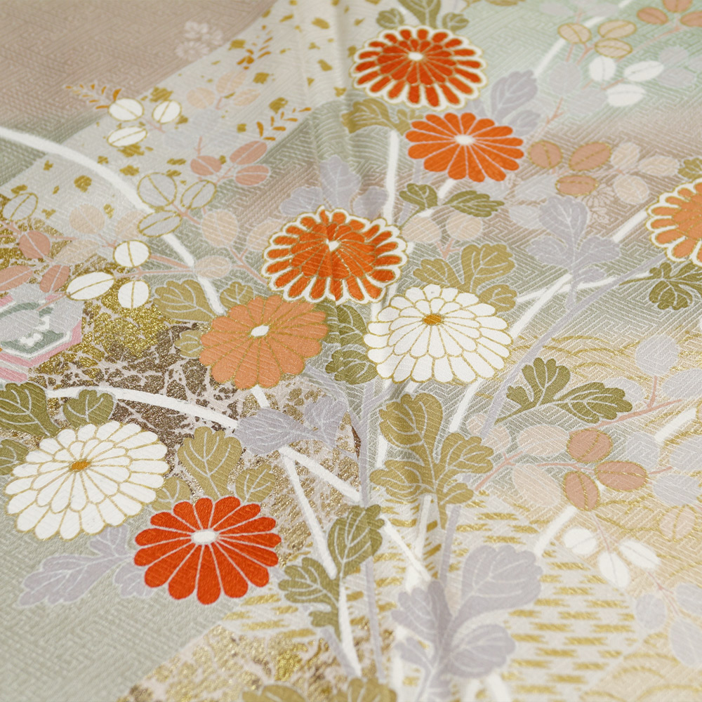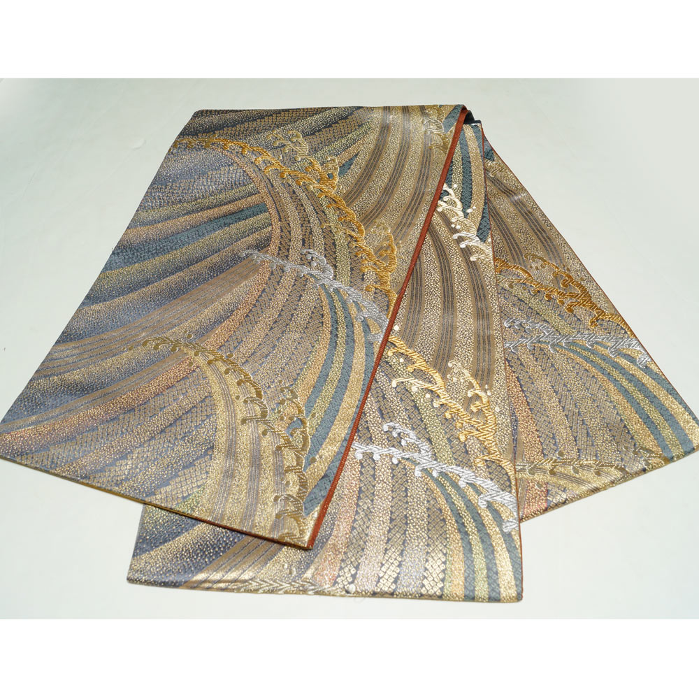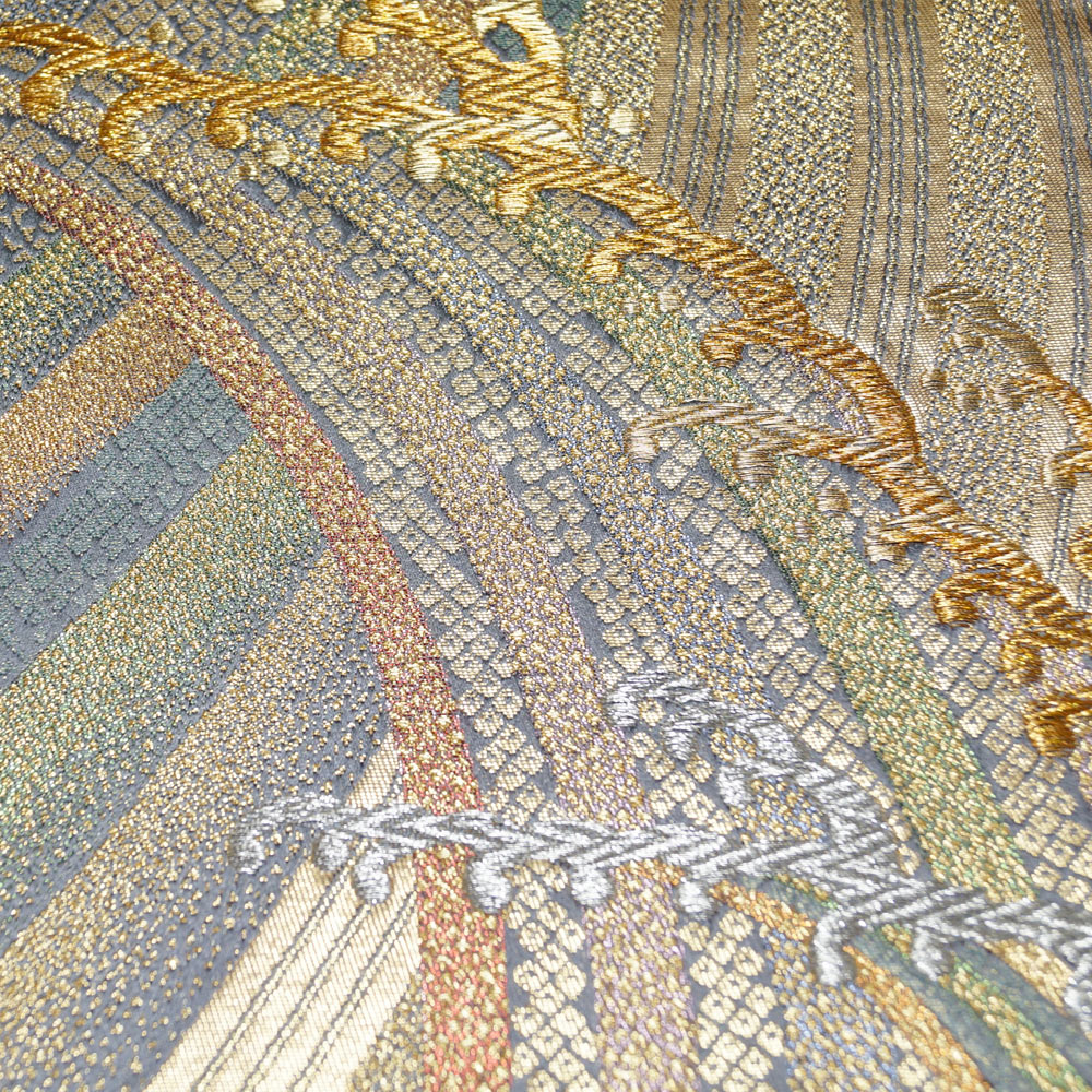 - 着物セット 訪問着・袋帯 2点 セット エ霞に百花、短冊模様 Lサイズ 本金箔 中古 訪問着 リサイクル着物 きもの天陽