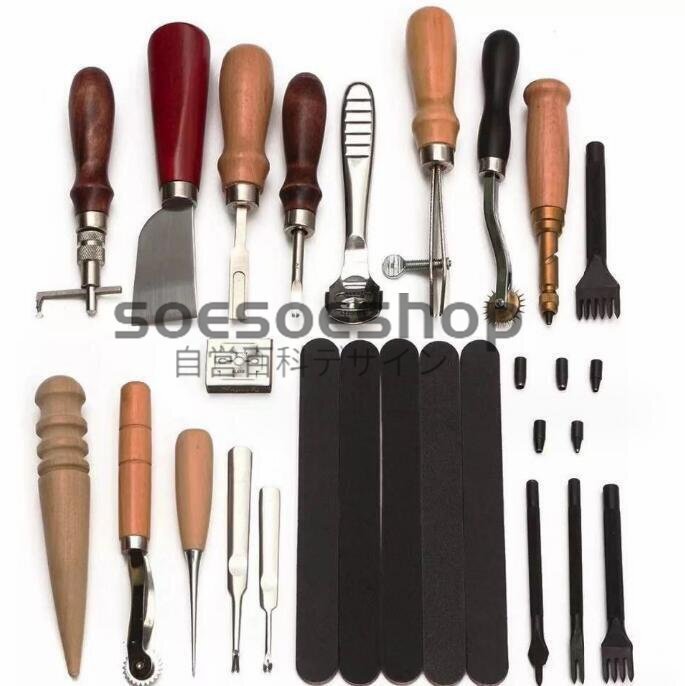 - 大人気なんと18点セット!! レザークラフト ツール キット 工具 DIY 初心者 手縫い ハンドメイド 革 皮 道具 プレゼント