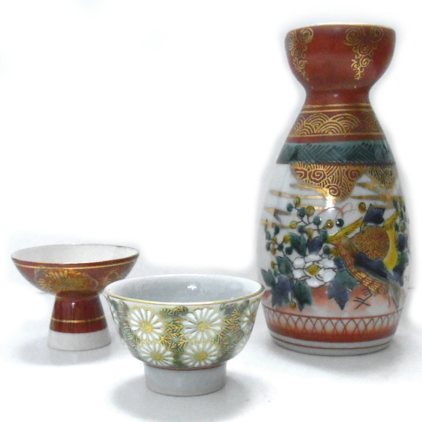 - 九谷焼★庄三 徳利 花鳥文様 仙守等 盃 花詰文様 花文様 2種セット