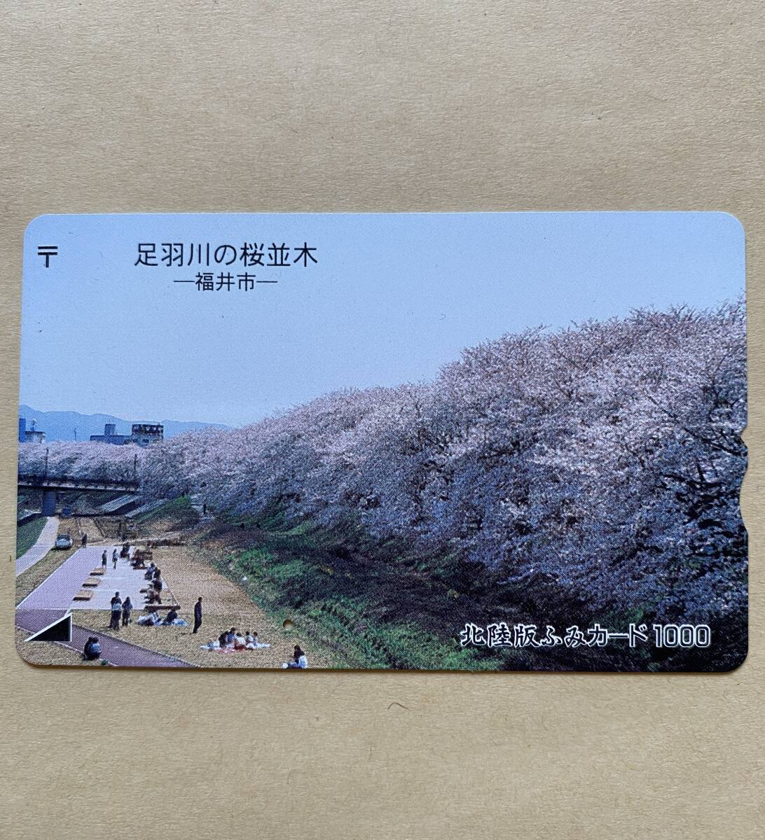 - 【使用済】 ふみカード 北陸版 足羽川の桜並木 福井市