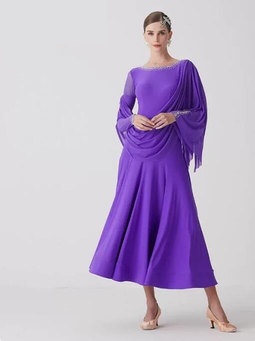 - 新入荷新品高品質ディース社交ダンス衣装 試合練習ドレス サイズセミオーダー モダンダンスドレス お洒落パープル ライトストーン飾り