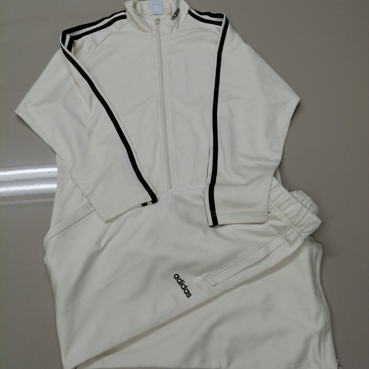 - E04 バンドTシャツ 関連 アディダスジャージ 上下セット クリームベージュ 左裾ヒモ無し