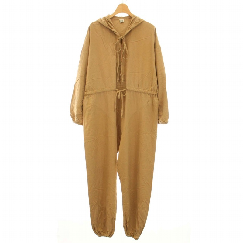 - ベースレンジ BASERANGE オールインワン サロペット ジャンプスーツ 長袖 フード シルクネップ 絹 シルク XS ベージュ ▲H レディース