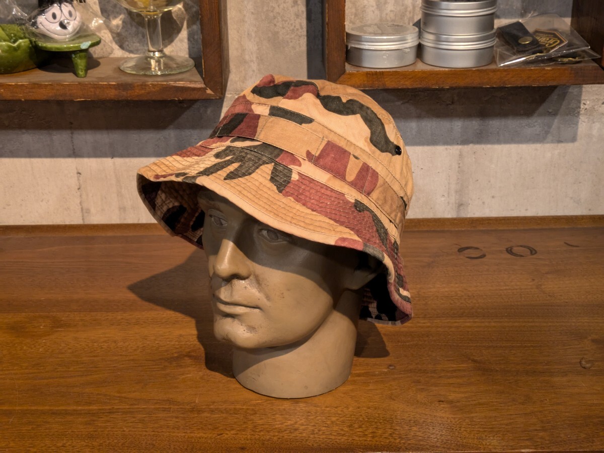 > 雰囲気GOOD!カモ柄 VINTAGE アウトドア ハット 100%コットン M〜Lサイズくらい アメカジ ビンテージ ハンティング ネコポスOK!