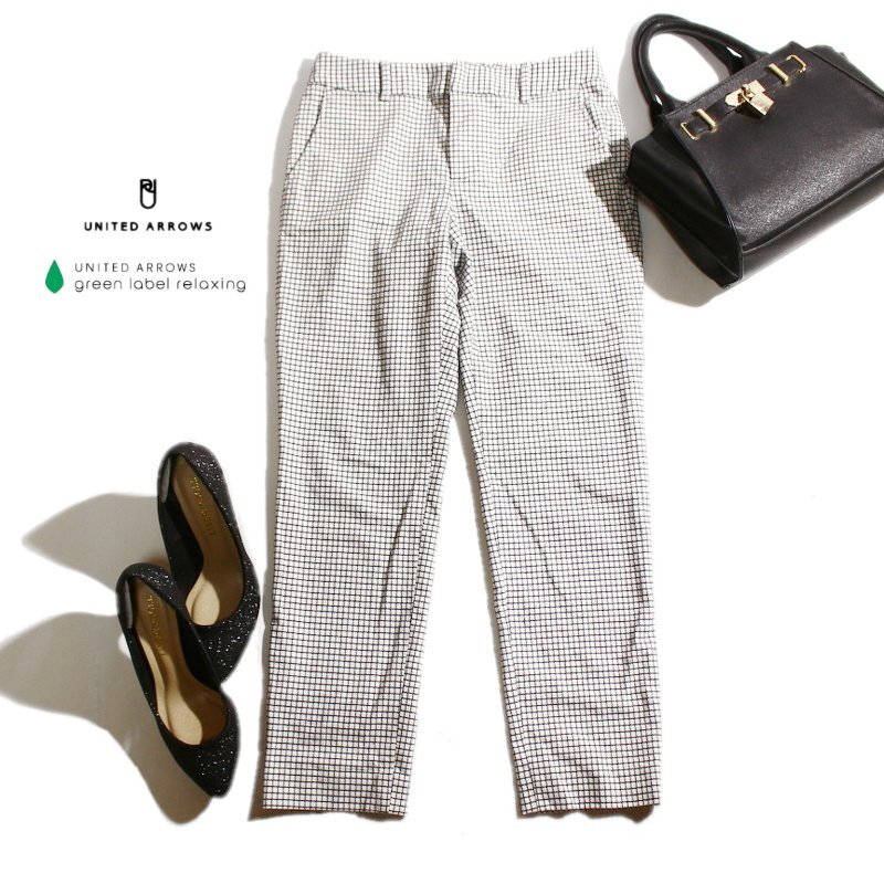 > 美品 ユナイテッドアローズ グリーンレーベルリラクシング UNITED ARROWS green label relaxing 春 夏 刺繍 格子柄 パンツ ホワイト 白 36