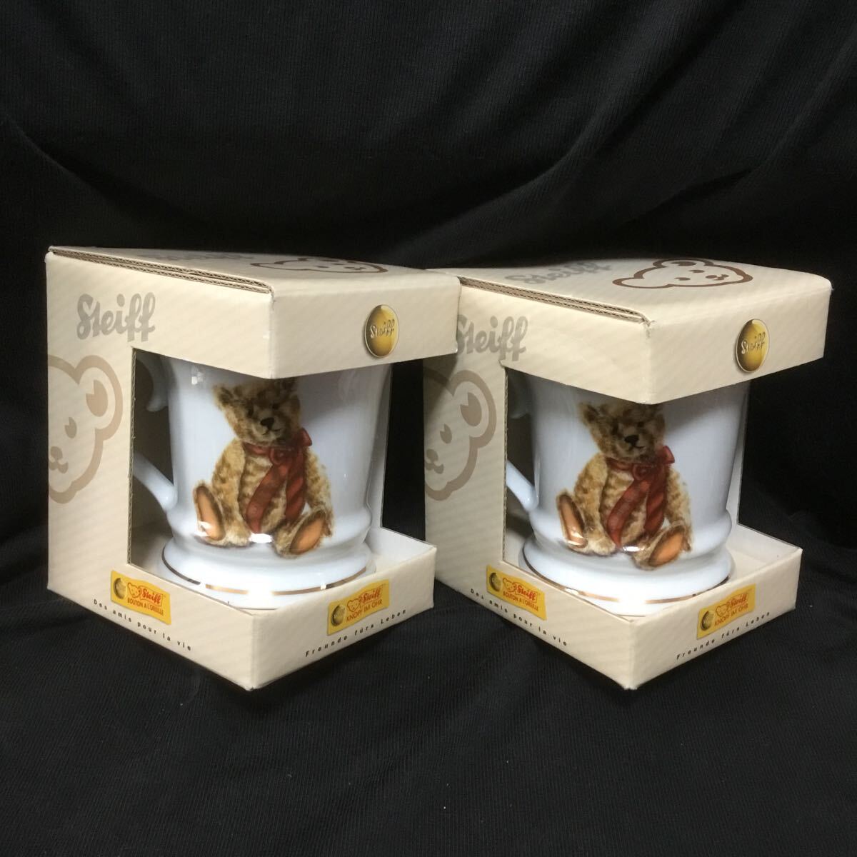 - シュタイフ テディベア柄マグカップ2個セット Steiff2005 シリアルナンバー入り限定