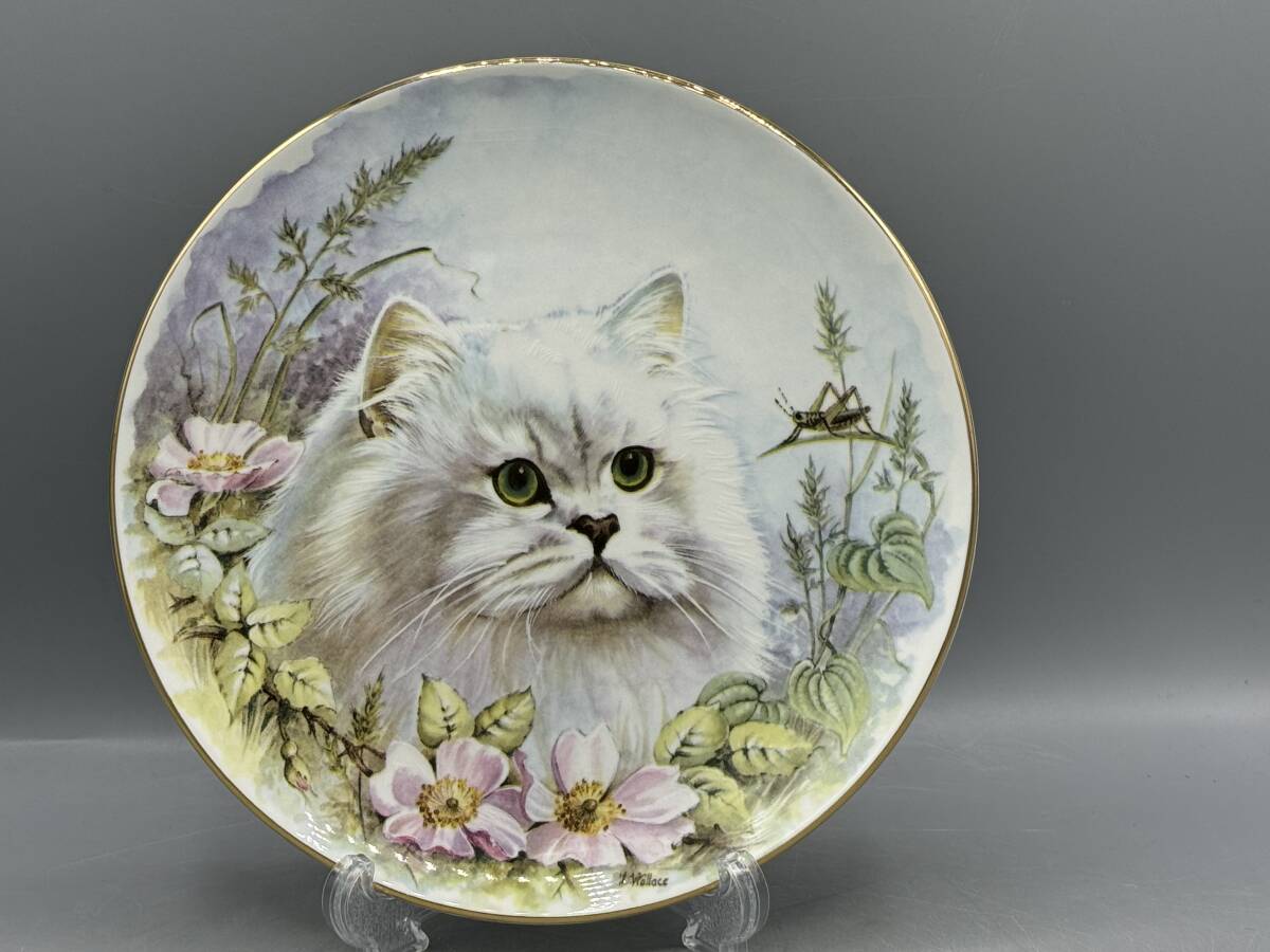- ロイヤル バーリングトン 白 猫 バッタ ねこ ネコ 飾り皿 (#12345)