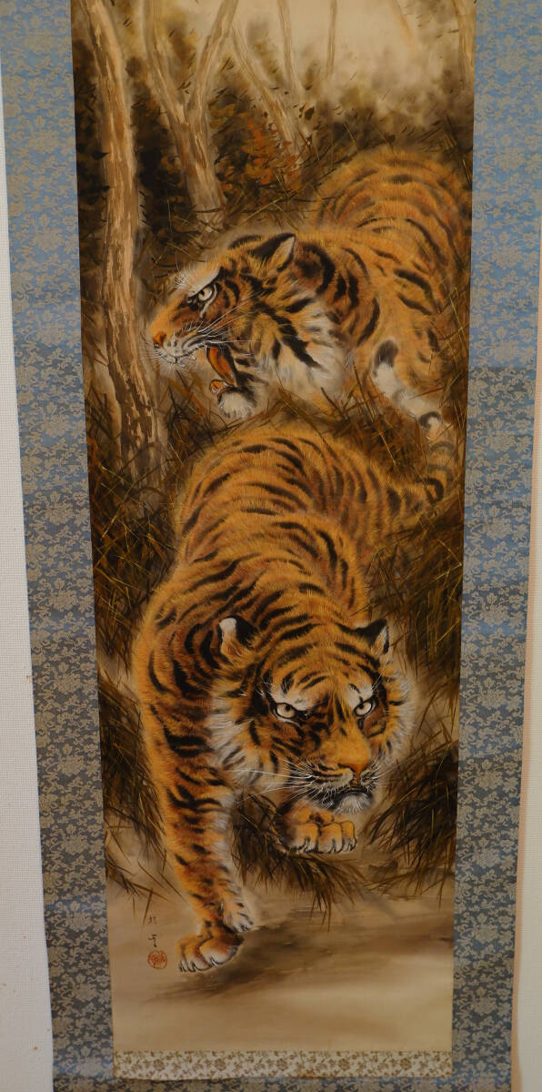 - 【貴重 極美】掛軸 頼雲『猛虎図』署名落款入 絹本 日本画 写生画 阪神ファン 大迫力 べらぼう 蔦屋 肉筆 真作 開運 寅の日