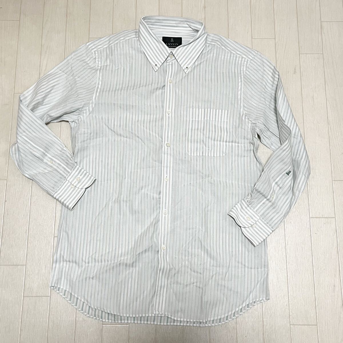 > 和722★① LANVIN COLLECTION ランバン コレクション ボタンシャツ ワイシャツ ボタンダウン ストライプ 50 ホワイト メンズ