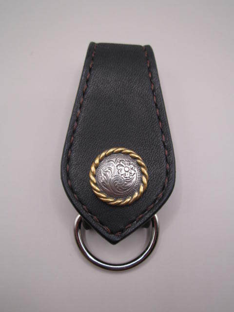 - サドルレザー「ブラック ウエスタン」ベルトループ キーホルダー キーリング バイカー ハーレー ロッカー シンプル ハンドメイド