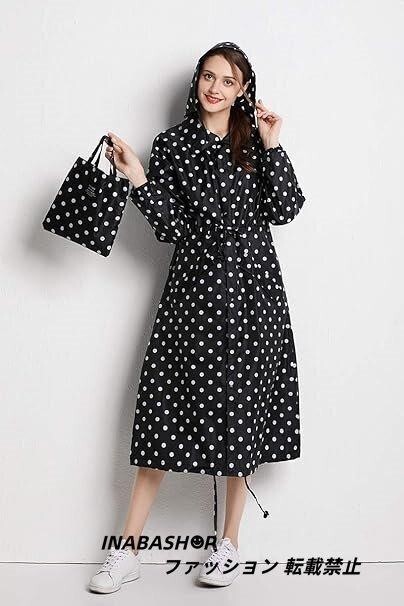 - 前開き レインコート レディース ロング丈 おしゃれ 防水 軽量 通学 通勤 収納袋付
