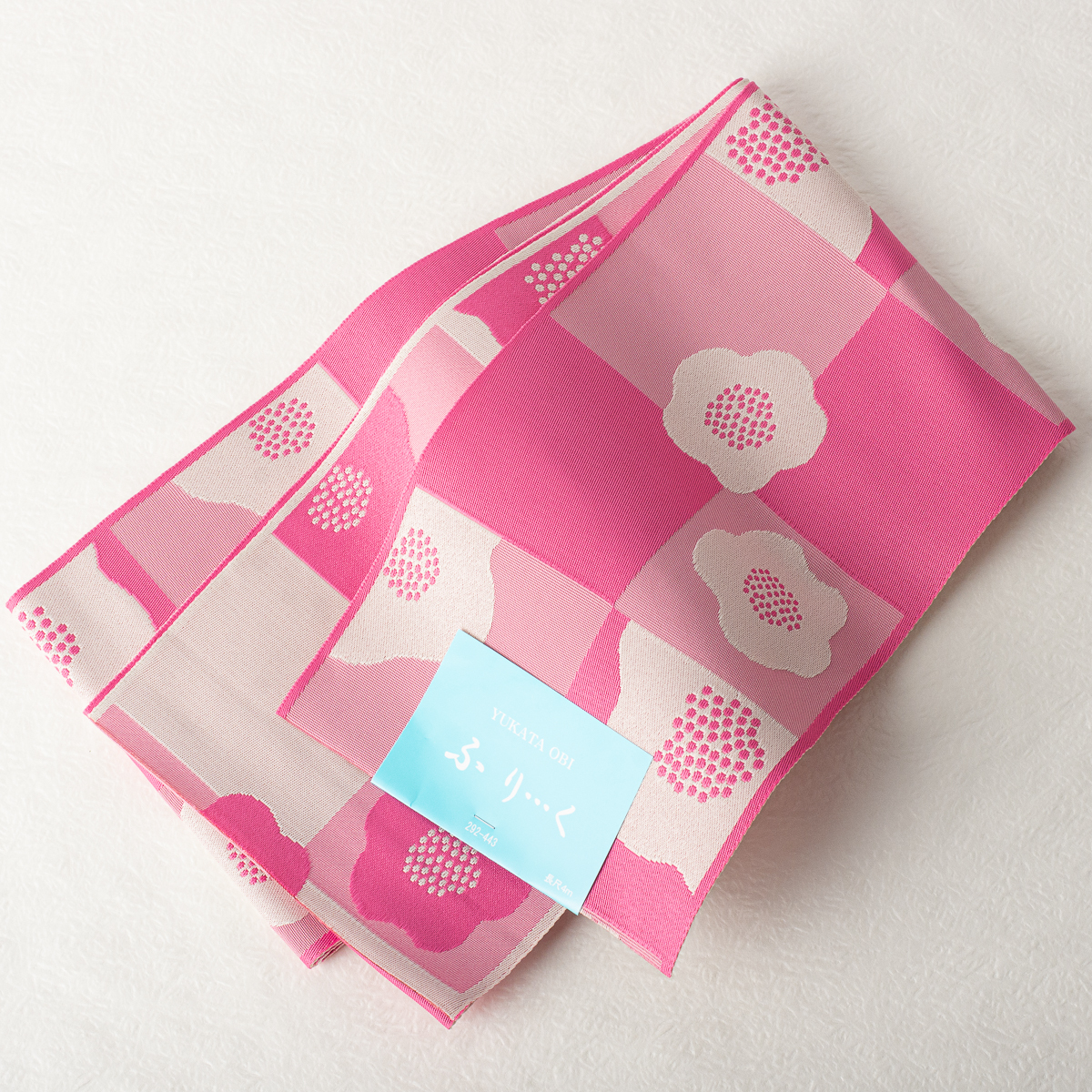 - 【半幅帯】NO.2515(花市松・ピンク)ふりーく 浴衣帯 袴下帯 単衣帯 長尺