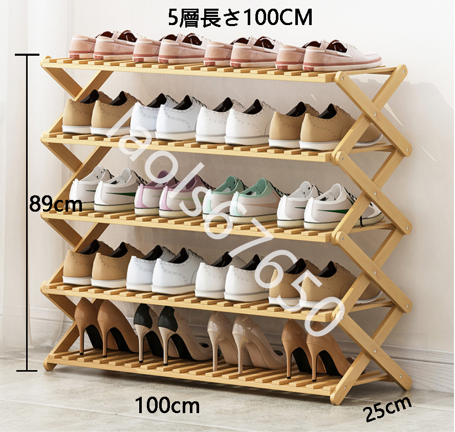 - 竹製折りたたみ式 靴棚 シンプル 出入り口 家庭用 屋内 見栄えの良い 収納多層棚 靴のキャビネット 耐久性良い 5層長さ100CM