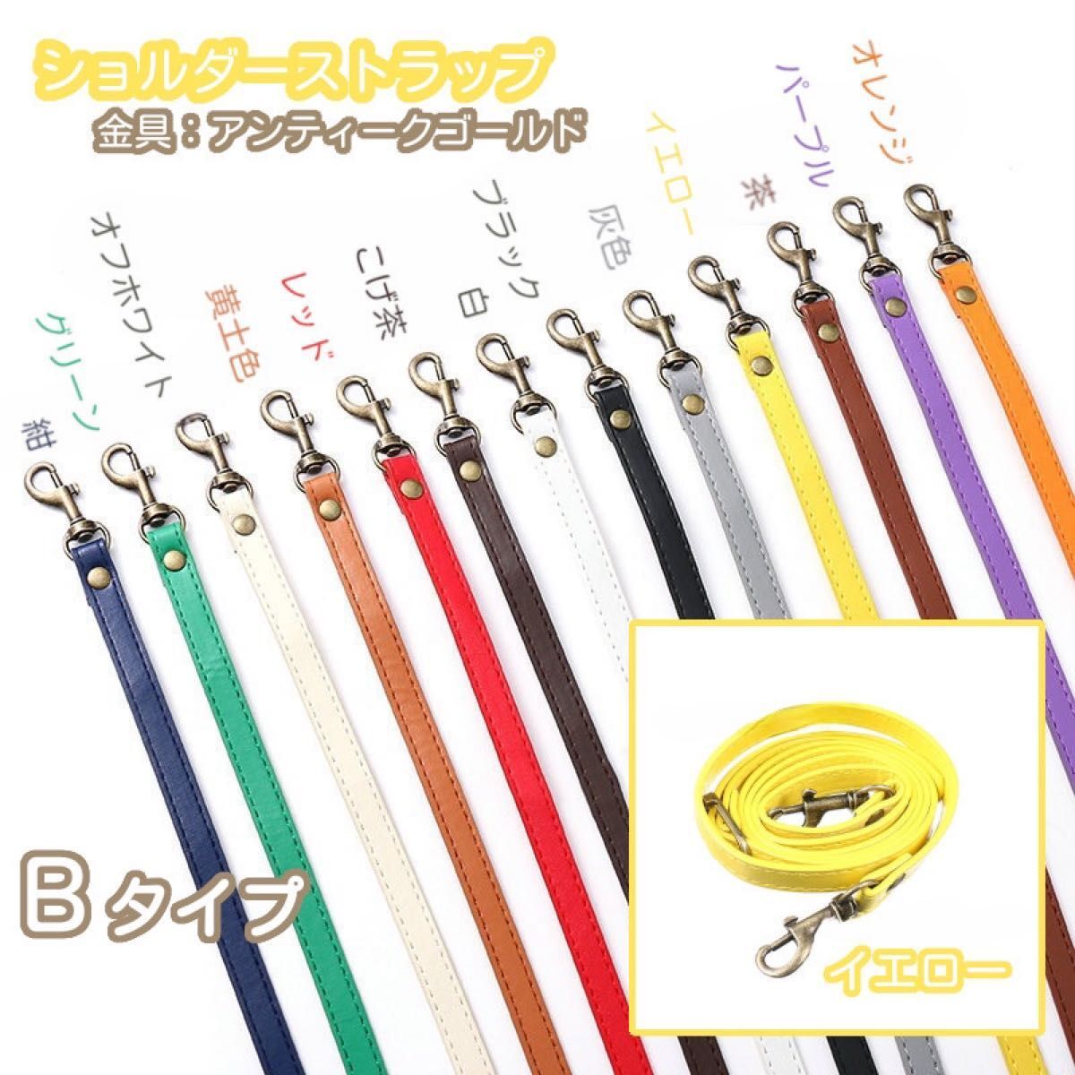 - Bタイプ ⑦イエロー バッグ用 ショルダー ストラップ 紐 単品 がま口口金 スマホ用 アンティークゴールド 12色