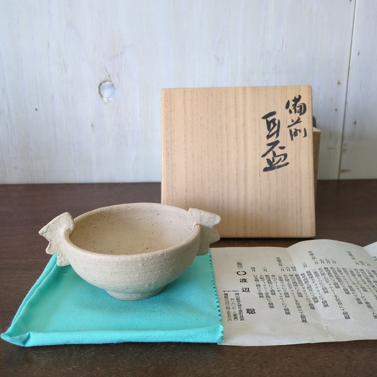 - 備前焼 渡辺聡 耳盃 共箱 酒器 師 森陶岳