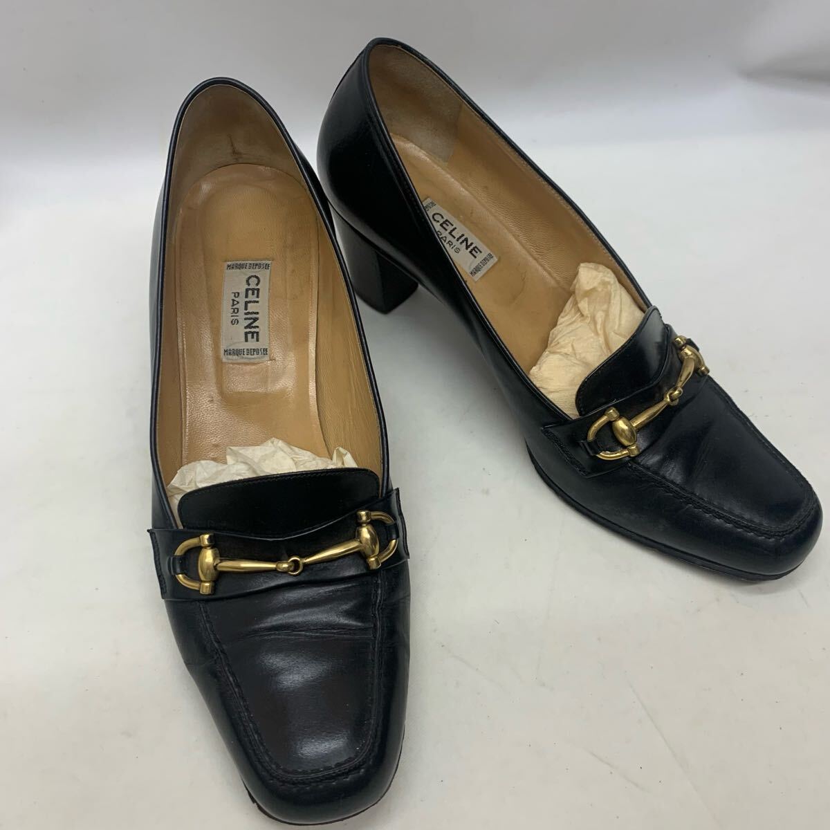 - 【23.5cm程度】CELINE セリーヌ レザー ホースビット パンプス ヒール シューズ 黒 ブラック 36 1/2 ローファー
