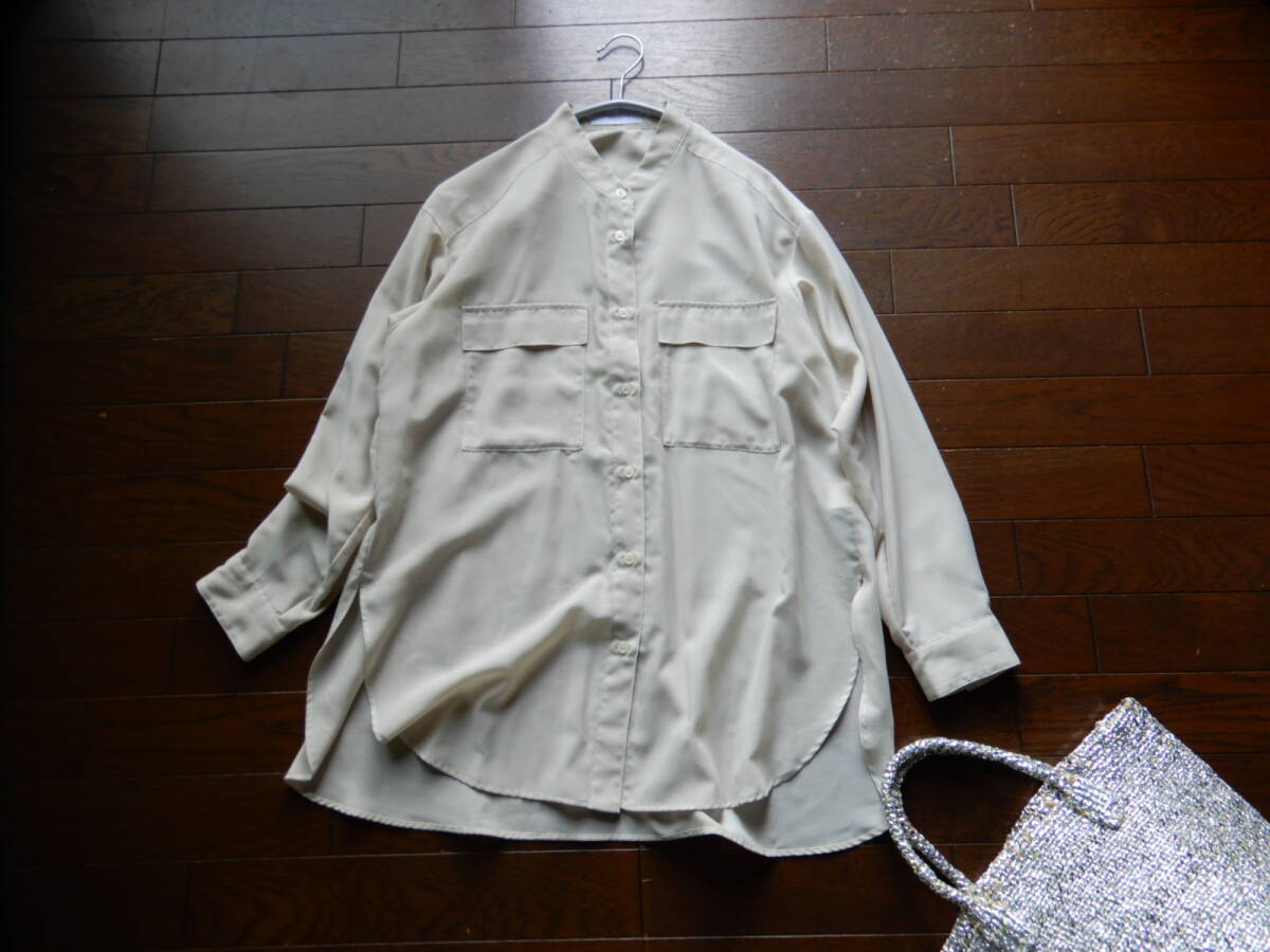 - 【simplicite/シンプリシテェ】’20 羽織りにも 大人可愛いゆったりシアースタンドカラーバンドカラーシャツブラウス ベージュ