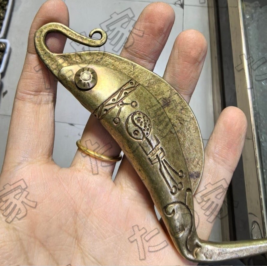 - 民俗物 コレクションし 純銅 大魚ナイフ本 手彫り 山の鬼 ゴシップ魚 13cm ARO25