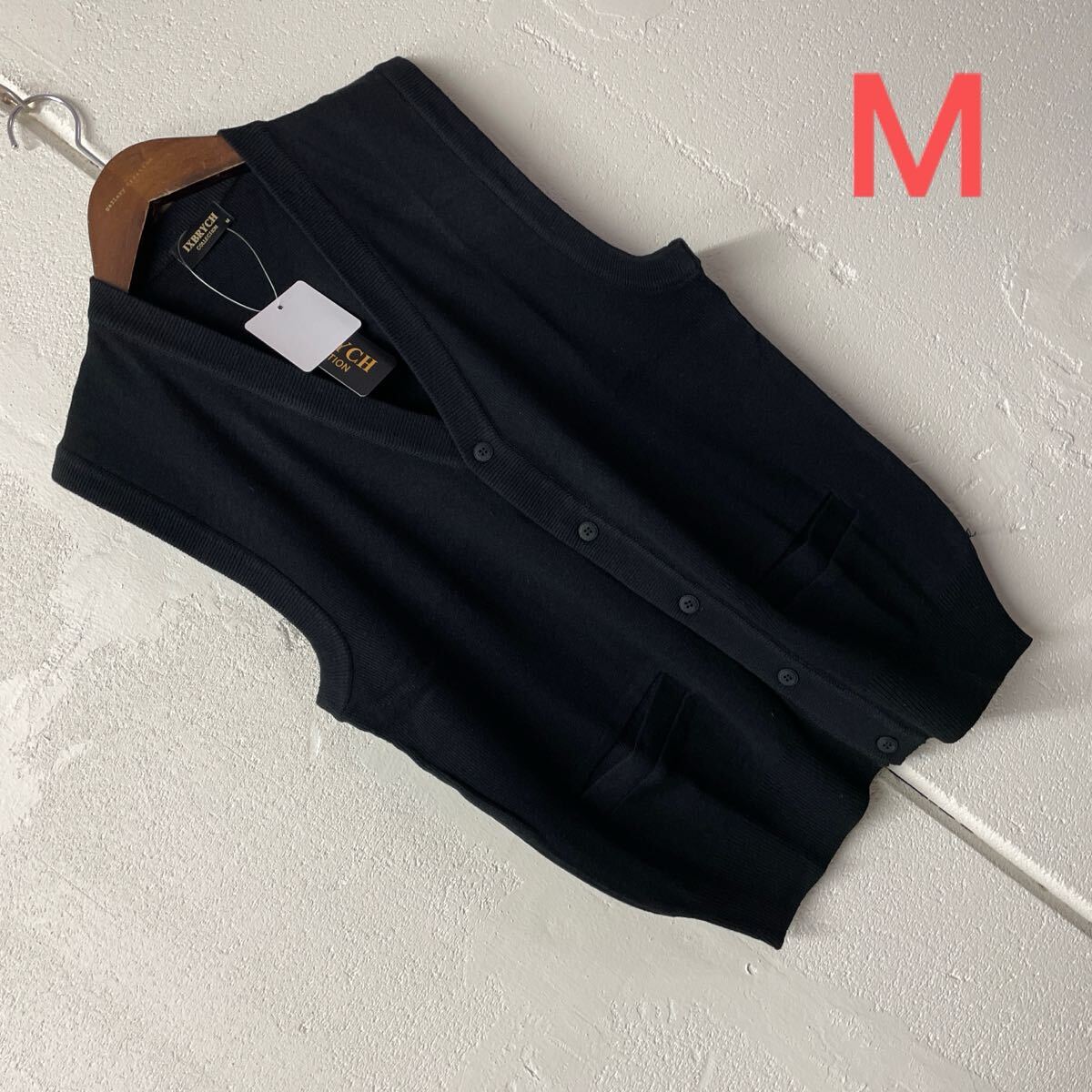 - Mサイズメンズお家で洗えるウール混前ボタンニットベスト黒