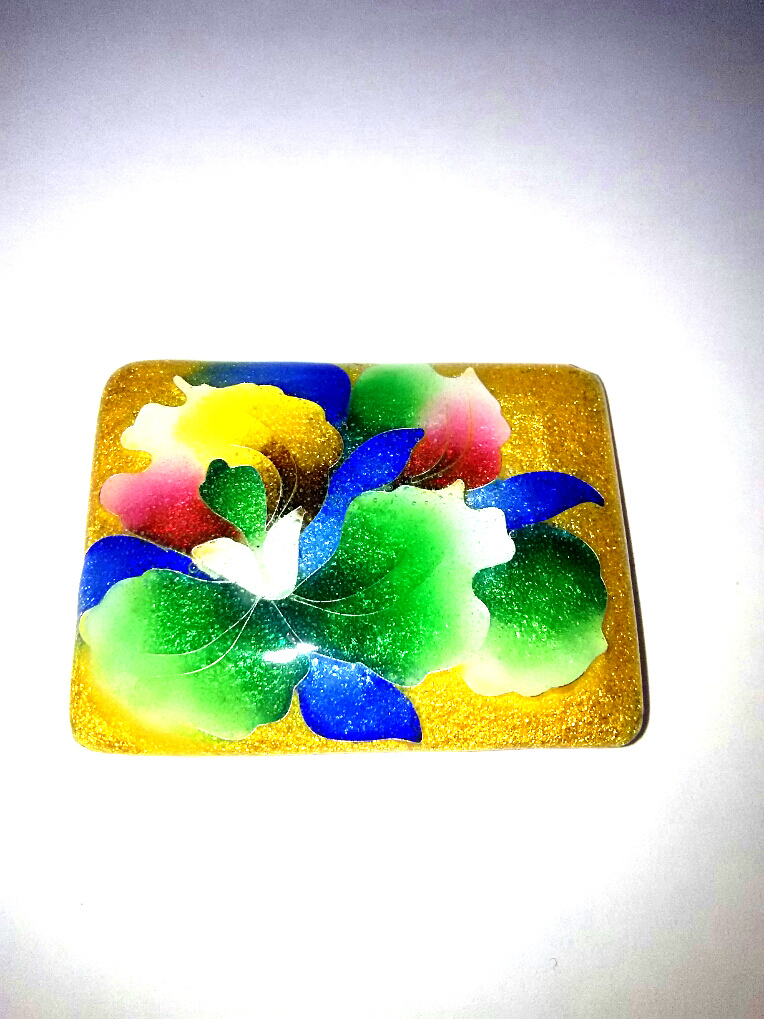- 昭和レトロ ブローチ 鮮やかな花 フラワー / カラー 青 紺 紫 緑 白 金 ブルー ネイビー パープル グリーン ゴールド / アクセサリー