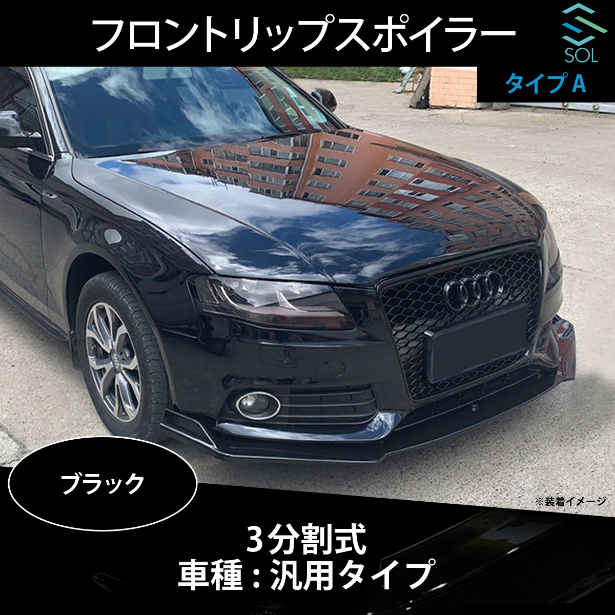 3分割式 フロントリップスポイラー ABS製 3点セット ブラック タイプA