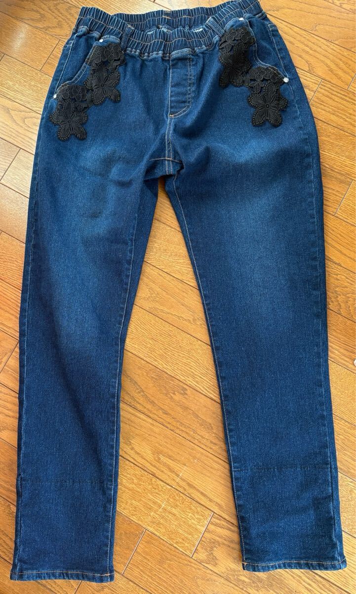 - 送料無料 &LOVE 穿き心地楽ちんなフラワーレース美脚カラーデニム インディゴ 未使用 LLアンドラブ qvc 匿名配送 デニムパンツ