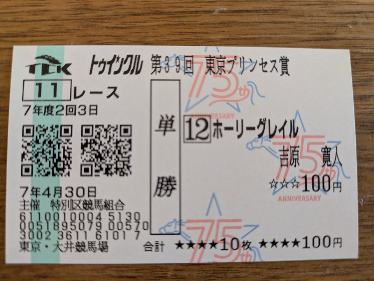 - 即決!2025年 東京プリンセス賞 ホーリーグレイル 現地購入 単勝馬券 大井競馬場