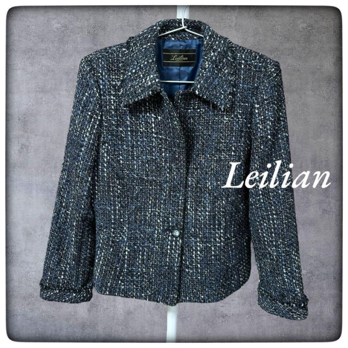- Leilian レリアン ウール ツイード 一つ釦 ジャケット ネイビー