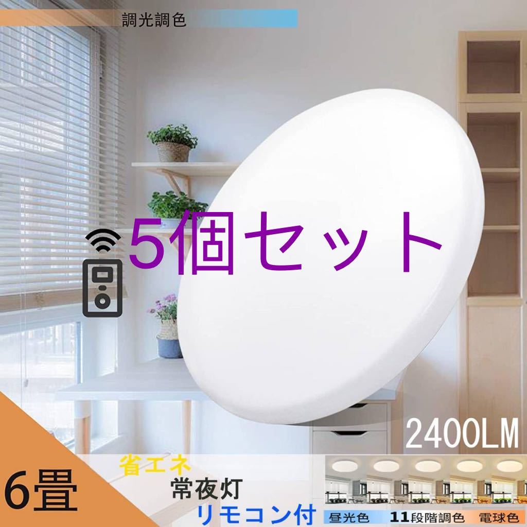 - LEDシーリングライト天井照明 6畳 20w 調光調色 2500LM リモコン付き 電球色 昼光色 常夜灯5個セット