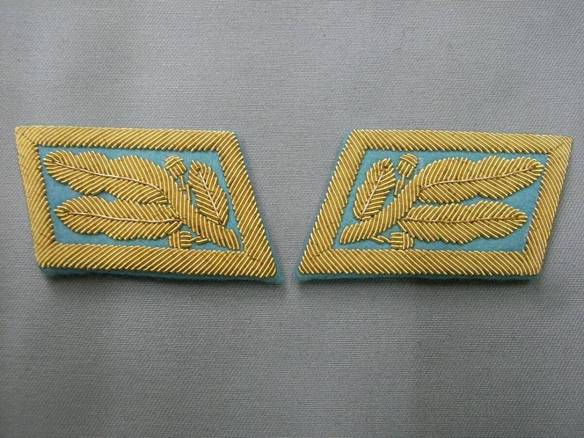 - ■金モール刺繍 襟章1組 青緑色台生地■新品■