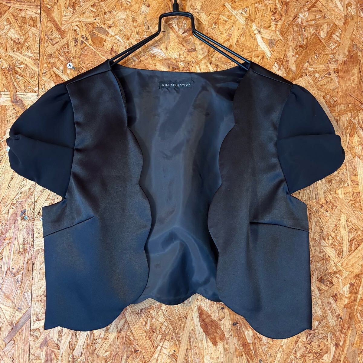 - 美品 WILLSELECTION ブラック ボレロ フォーマル カーディガン サテン 日本製 半袖 レディース 4349