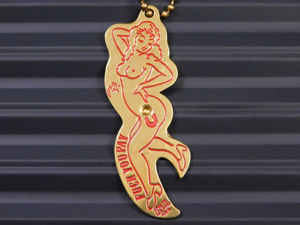 > ◆送料\140◆【ユーペイスピナーキーホルダー】※《SEXY ピンナップガール / ゴールド×レッド》 真鍮製 キーリング アメ雑貨