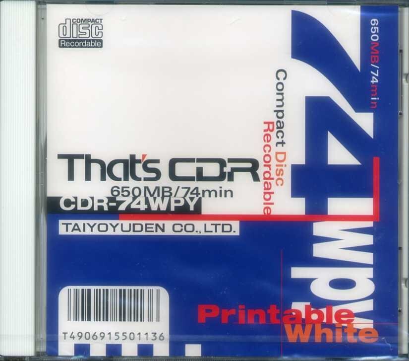- That's 太陽誘電 CDR 650MB / 74min CDR-74WPT プリンタブル 1~8倍までの記録速度に対応 10mmケース 1枚パック 未開封 日本製