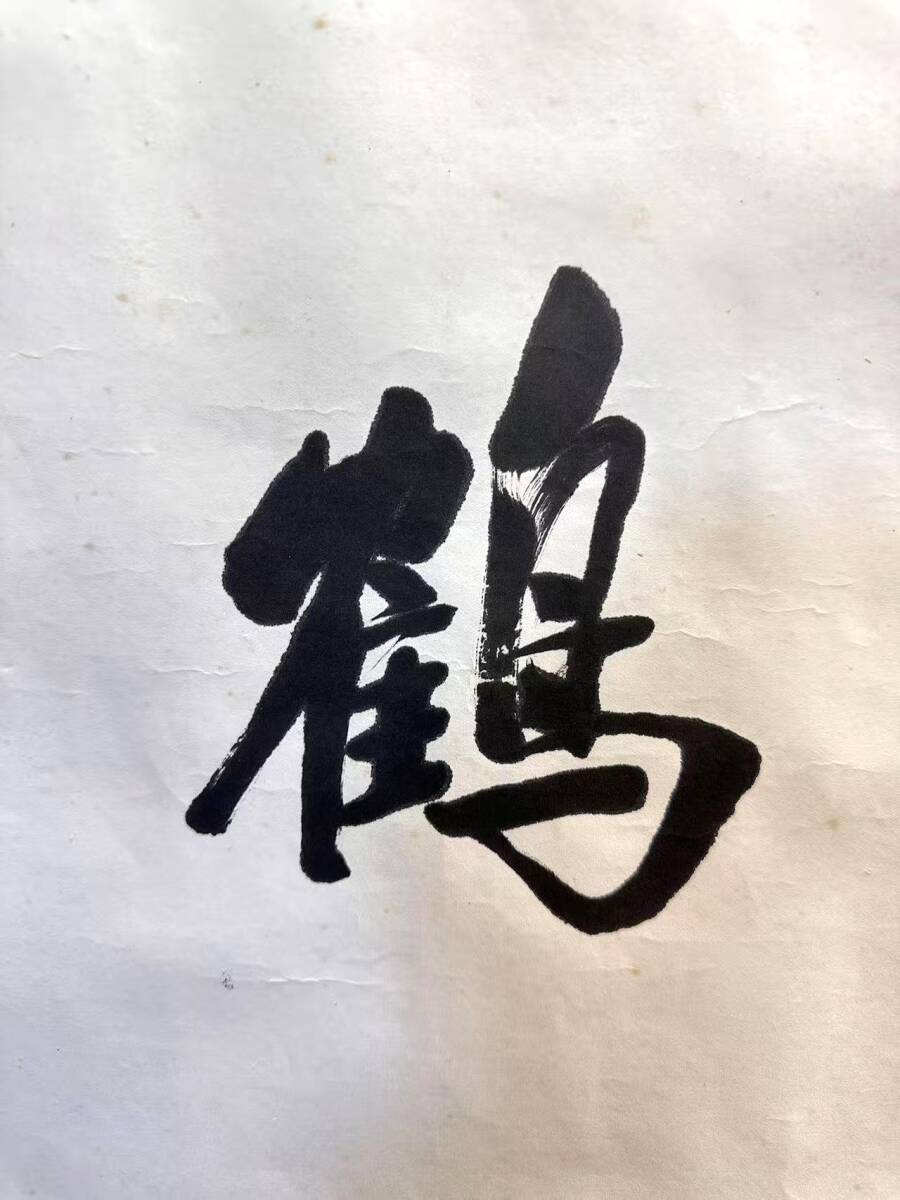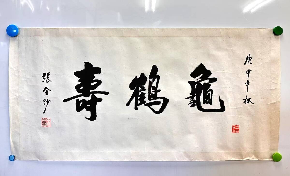 - F107『肉筆』張金沙【亀鶴寿】書 書道 書法 毛筆 紙本 中国美術 掛軸 額 在銘 落款 現状品 サイズ:約89.3㎝ x 44㎝『模写』