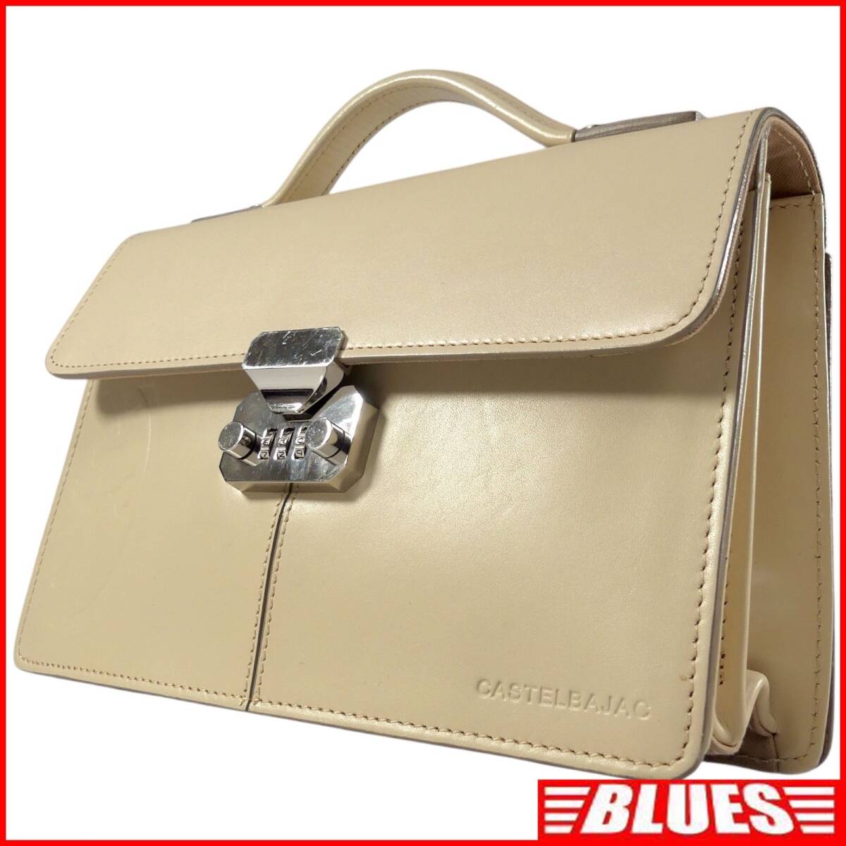 - 即決★CASTELBAJAC★ビジネスバッグ 本革 カステルバジャック ベージュ系 ハンドバッグ 錠付き