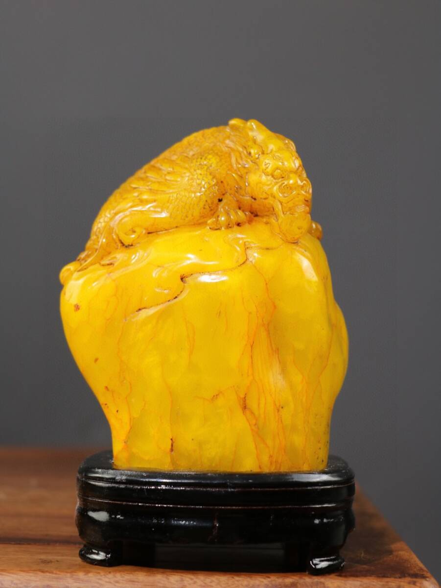 - ▽鴻▽ 寿山石 田黄石 細密彫 龍戲珠印章 箱付 置物 古賞物 中国古玩 中国古美術