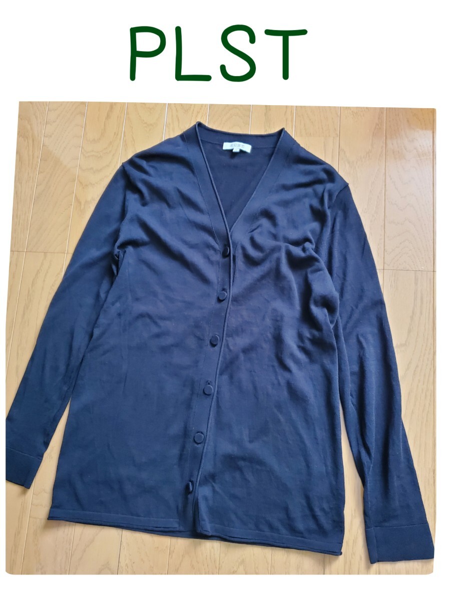 - 送料無料★PLST プラステ Vネック シアーカーディガン ブラック M 黒