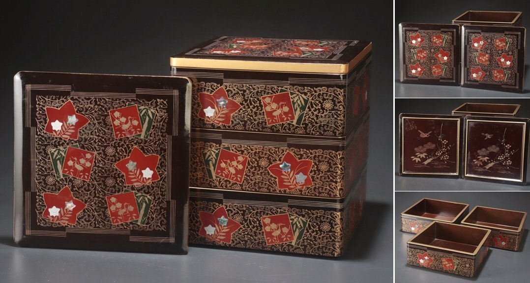 朱孔 ■【夢讃岐】茶道煎茶/木製漆器 螺鈿蒔絵 3段重箱 240x240 H85(1段) jp220■ xvpbvx 商品詳細 御覧頂き、ありがとうございます。 【夢讃岐】茶道煎茶/木製漆器 螺鈿蒔絵 3段重箱 240x240 H85(1段) jp220 ○商品状態○ 経年あります。良い状態です。 木製漆器。状態に関しては,充分に画像で確認の上、クレームの無い様に御入札下さい。 ○サイズ○ --x--mm/高さ--mm(1段) ぐらい ○御一読下さい○2025年で、昭和100年です。私共の扱う品は、大半の物が半世紀から一世紀以前の品です。 新品と表記しない限り,確実に経年有りますので, 新品とは違い、擦れアタリ等は有るとお考え下さい。 また細かい見落とし等も時代古物とお考えの上御容赦下さい。 気になる箇所は、画像にもアップ致しますので、ご了承の上御入札下さい。 記載・画像掲載されてない,見落としに関しては、常識の範囲で誠意対応致します。 他にも漆器をメインに出品しておりますので、ぜひ御覧下さい 。