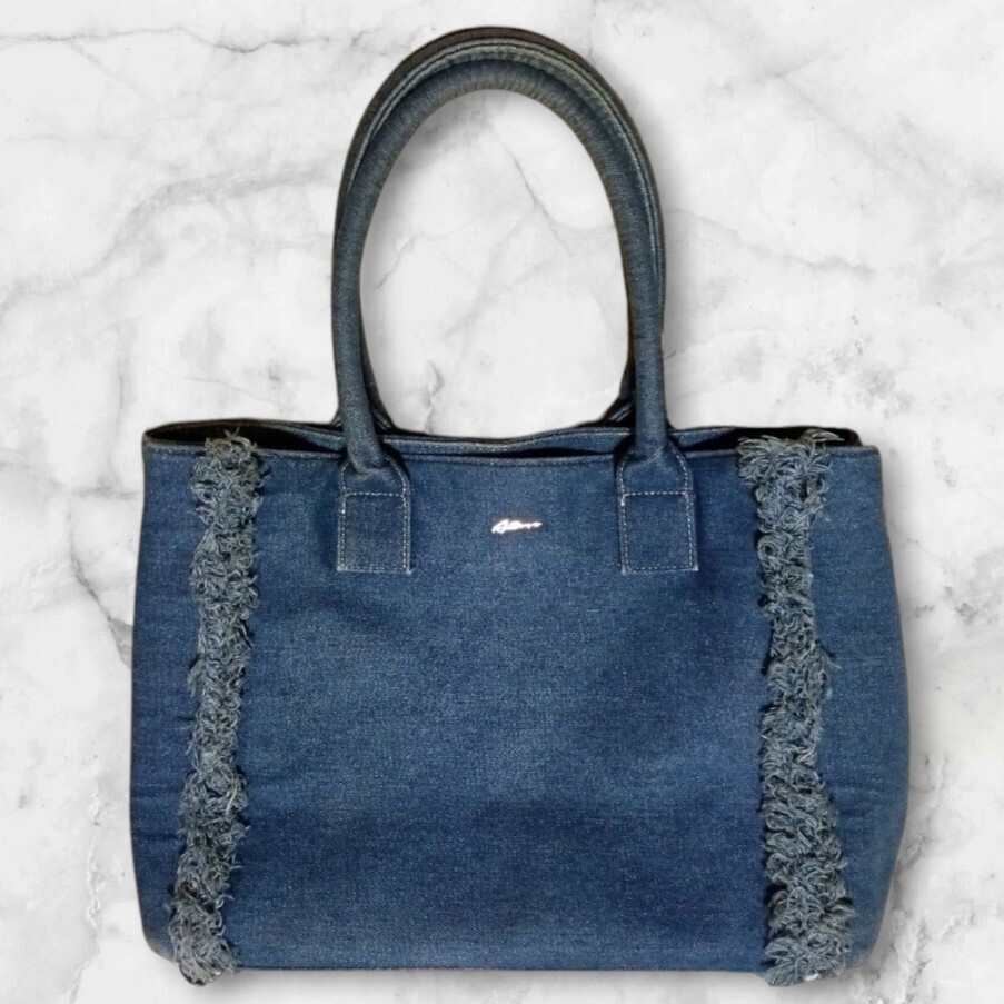 - デニムトートバッグ フリンジ 大容量