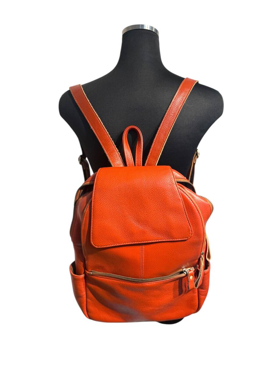 - ●H7-6-177 日本鞄協会 本革リュック 男女兼用 中古品 日本製品 大容量リュック 赤茶色系