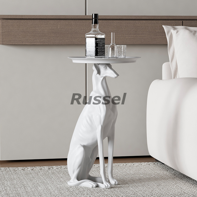 > サイドテーブル ユニーク ドーベルマン 犬 ホワイト ブルー おしゃれ かわいい ラグジュアリー インテリア 動物 アニマル コーヒーテーブル