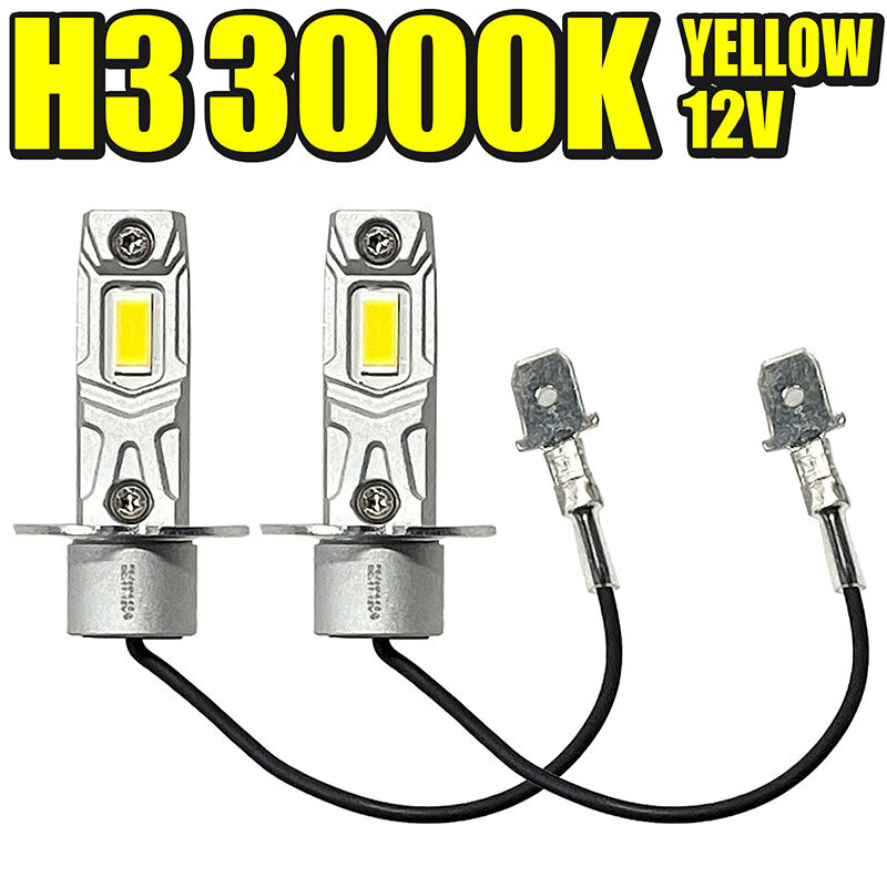 - H3 LEDバルブ フォグランプ 3000K イエロー 12V